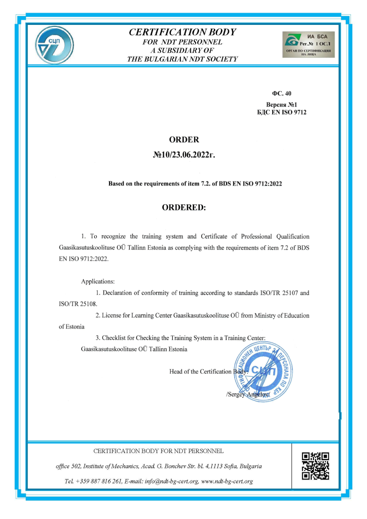 - Капиллярный неразрушающий контроль (пенетрант тест), PT- уровень 2 (50 часов)